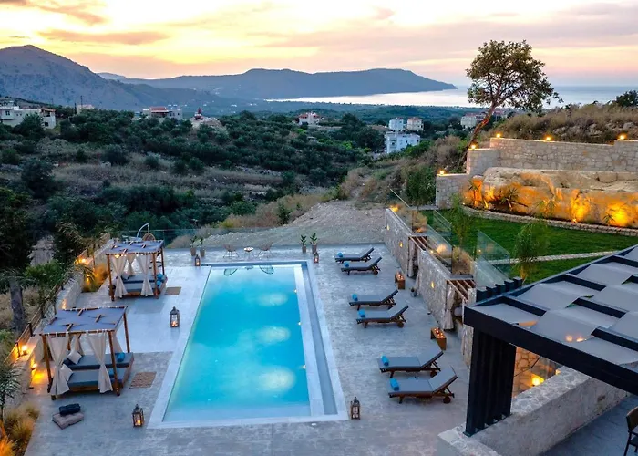 Deze 6-slaapkamer Esotico Escape Villa beschikt over een terras op de zee en een buitenzwembad. Deze villa biedt wifi en bevindt zich op ongeveer 25 minuten wandelafstand van het Meer van Kournas.